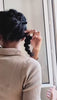 Prends une petite quantité de soin et chauffe-la entre tes mains. Ajuste selon la densité et la longueur de tes cheveux.